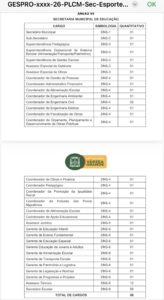 Na Secretaria Municipal de Educação, o novo modelo prevê 98 cargos, incluindo funções de direção, coordenação, assessoria e um número expressivo de 56 secretários escolares, além de cargos técnicos e administrativos. A ampliação ocorre em paralelo ao recente processo seletivo, o que gera críticas sobre possível sobreposição de funções e aumento de despesas.