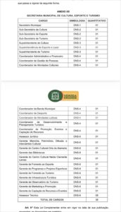 O ponto central do projeto é a criação da Secretaria Municipal de Cultura, Esporte e Turismo, com 35 cargos, incluindo secretário, três subsecretários e diversas coordenações e gerências. A nova pasta terá a missão de fomentar políticas culturais, esportivas e turísticas no município.