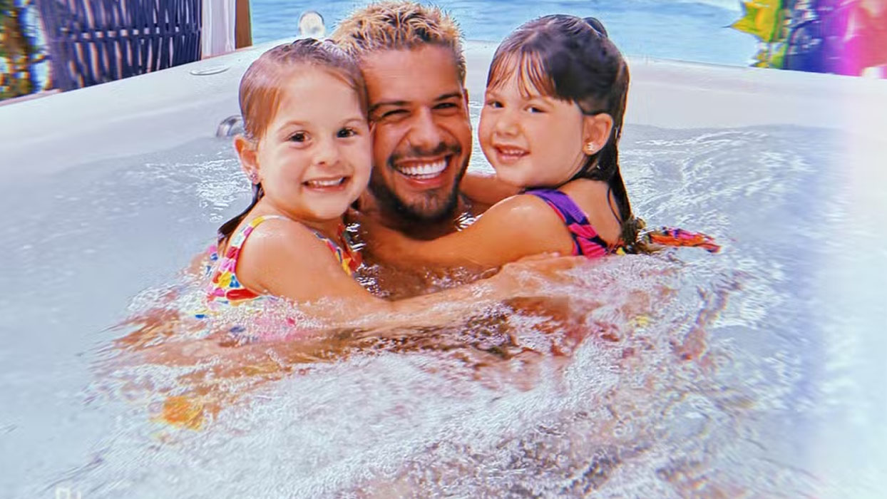 Nas imagens publicadas nas redes sociais, os pequenos surgem dando mergulhos na piscina, esbanjando animação e sintonia. A brincadeira contou ainda com a companhia do filho de Leonardo, reforçando o clima descontraído do encontro.