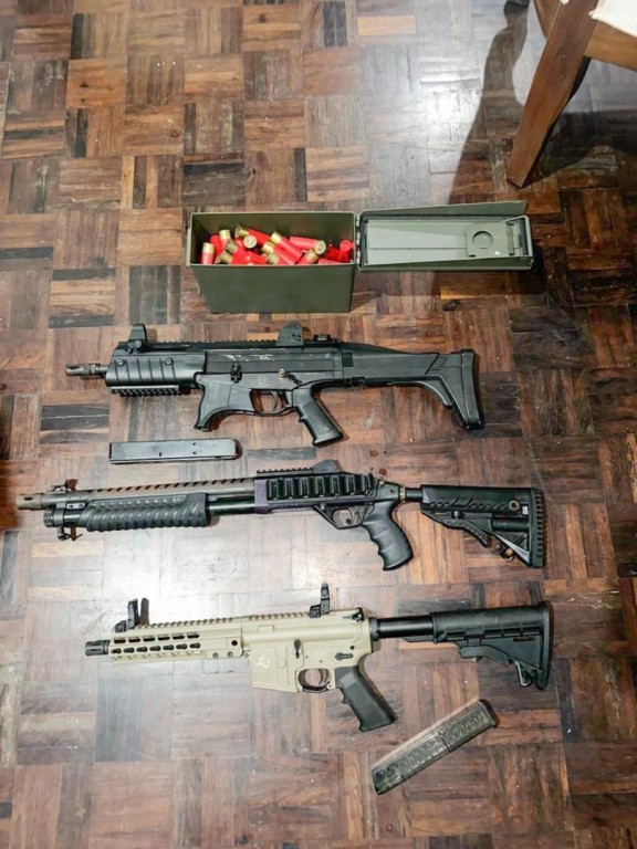 Durante o cumprimento dos mandados, a PF apreendeu quatro pistolas, um revólver, duas carabinas, uma arma calibre 12, além de diversas munições, valores em espécie, cheques, veículos, documentos, telefones e computadores.