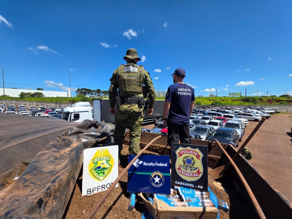 PF, em ação conjunta com a RFB, o BPFron e o BPMOA, apreende carga de cigarros contrabandeados