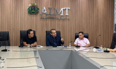 Os deputados estaduais Wilson Santos (PSD), Eduardo Botelho (União) e Diego Guimarães (Republicanos) se reuniram, nesta segunda-feira (19), no Colégio de Líderes da Assembleia Legislativa de...