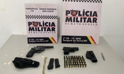 Policiais militares do 19º Batalhão prenderam um homem, de 32 anos, por porte ilegal de arma de fogo, na madrugada deste sábado (31.1), em Tangará da...