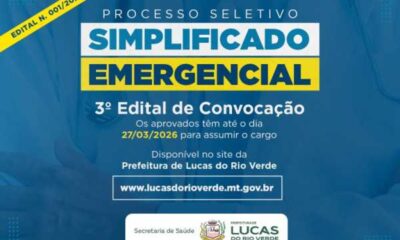 Já está disponível no site da Prefeitura de Lucas do Rio Verde, o terceiro edital de convocação dos aprovados no Processo Seletivo Emergencial Simplificado (Edital n....